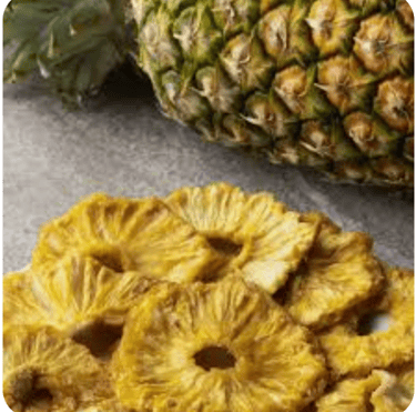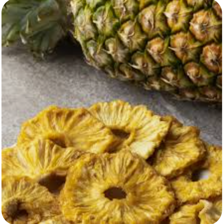 Riche en fibres, vitamine C et manganèse, l’ananas séché est une alternative saine aux en-cas sucrés. Il se déguste seul en collation et est idéal pour les snacks sains, mélanges de fruits secs, barres énergétiques, industries agroalimentaires. Son goût sucré et sa conservation longue durée en font un allié incontournable pour une alimentation équilibrée et gourmande.