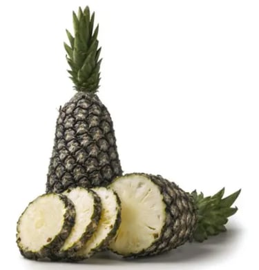 L’ananas Pain de Sucre (Sugar Loaf) est une variété unique, reconnue pour sa chair blanche exceptionnellement juteuse et sucrée, sans aucune acidité, offrant une expérience gustative douce et raffinée. Sa texture tendre en fait un fruit très apprécié.